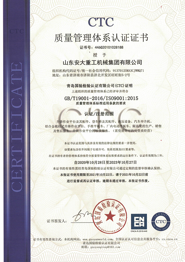 安徽質(zhì)量管理體系認(rèn)證證書
