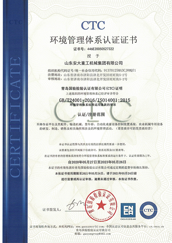 安徽環(huán)境管理體系認(rèn)證證書